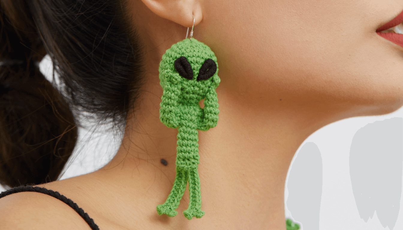 Ready for a close encounter of the fashionable kind? Our Alien Earrings are a playful nod to the mysteries of the universe. Hand-crocheted in a vibrant, "galactic green," these little space travelers feature a lean, expressive silhouette that captures the iconic alien form with an artisanal twist.