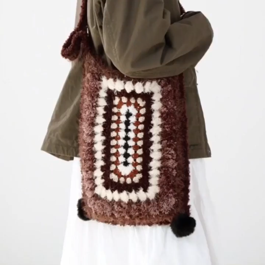 Why settle for one look when you can have two? The Vintage Grid Bag features a sophisticated AB-surface design, offering different color-matching effects on each side to suit your daily mood. This isn't just a bag; it's a multi-textured masterpiece adorned with playful "polka dot" plush balls that dance against a classic granny-square backdrop.